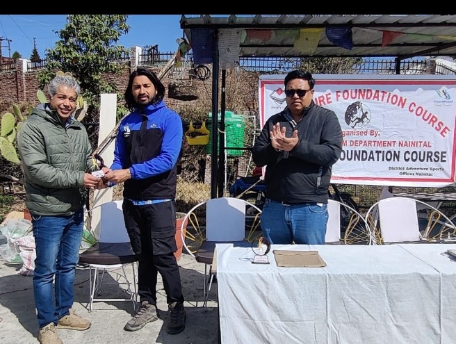 नैनीतालl सरोवर नगरी में साहसिक पर्यटन को बढ़ावा देने हेतु पर्यटन विभाग जनपद नैनीताल की जिला योजना के अंतर्गत सात दिवसीय एडवेंचर फाउंडेशन प्रशिक्षण कार्यक्रम आज सोमवार को समापन किया गयाl जिसमें 10 प्रशिक्षणार्थियों को प्रशिक्षण प्रदान किया गया सभी प्रशिक्षणार्थियों को प्रमाण पत्र वितरित किए गए समापन समारोह में पर्यटन विभाग से मुख्य प्रशासनिक अधिकारी चंदन सिंह बिष्ट जी मुक्तेश्वर होटल एसोसिएशन के सचिव विक्रम सिंह बिष्ट एवं समाजसेवी हम स्टे संचालक दिलावर सिंह बिष्ट आदि लोग उपस्थित रहे ।