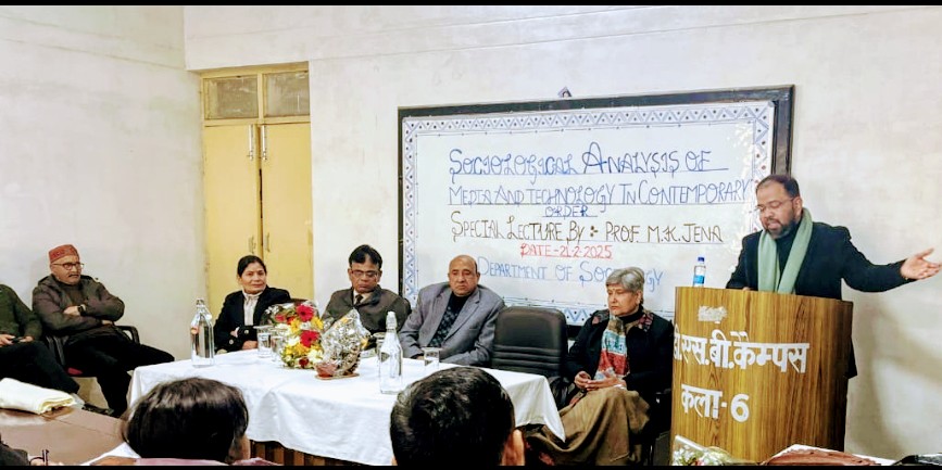 नैनीतालl सरोवर नगरी में कुमाऊं विश्वविद्यालय, नैनीताल के समाजशास्त्र विभाग में 21 फरवरी 2025 को एक महत्वपूर्ण विशेष व्याख्यान का आयोजन किया गया। समकालीन क्रम में मीडिया और प्रौद्योगिकी का समाजशास्त्रीय विश्लेषण ” (“Sociological analysis of media and Technology in contemporary order”) विषय पर आयोजित इस कार्यक्रम में मुख्य वक्ता के रूप में जवाहरलाल नेहरू विश्वविद्यालय (जेएनयू) के प्रतिष्ठित समाजशास्त्री प्रो. मनोज जेना ने अपने विचार साझा किए। कार्यक्रम की अध्यक्षता समाजशास्त्र विभाग की विभागाध्यक्ष प्रो. ज्योति जोशी ने की है,