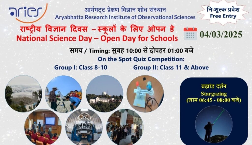 4 मार्च को विद्यार्थियों के लिए एरीज में राष्ट्रीय विज्ञान दिवस होगा कार्यक्रम