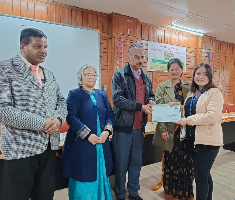 नैनीतालl सरोवर नगरी में कुमाऊं विश्वविद्यालय के डी एस बी परिसर के आर्ट्स ऑडिटोरियम में बुधवार विजिटिंग प्रोफेसर निदेशालय तथा बॉटनी डिपार्टमेंट के द्वारा आयोजित तथा कुमाऊं विश्वविद्यालय व यू कॉस्ट द्वारा प्रायोजित दो दिवसीय राष्ट्रीय कॉन्फ्रेंस इन मॉडर्न ट्रेंड इन मेडिसिनल प्लांट के दूसरे दिन के प्रथम तकनीकी सत्र में पर्यावरण संस्थान कोसी अल्मोड़ा के साइंटिस्ट ई डॉ के एस कनवाल ने ऑनलाइन माध्यम से बताया कि औषधीय पौधों का प्रोपेगेशन तथा संरक्षण जरूरी हैl डॉ कनवाल नए कहा कि मेडिसिनल प्लांट बदलते जलवायु परिवर्तन में इकोसिस्टम सर्विसेज को बेहतर करने की जरूरत है । उन्होंने कहा कि इकोलॉजिकल नीच मॉडलिंग की जानी जरूरी है ।उन्होंने बताया कि भारत में 2500 प्लांट की प्रजाति मेडिसिनल रूप में आयुर्वेद तथा होम्योपैथी सिस्टम में प्रयुक्त होते है । पर्यावरण संस्थान के ही वैज्ञानिक डी डॉ आशीष पांडे ने कहा कि औषधीय पौधे इकॉनमी का बड़ा आधार है । डॉ आशीष नए ग्लोबल टेंपोरल इवोल्यूशन ट्रेंड तथा हिमालई औषधीय पौधों की जानकारी भी दी ,उन्होंने कहा कि आज चीन में सबसे ज्यादा शोध औषधीय पौधों पर हो रहा है । भारत विश्व का सबसे बड़ा हर्बल चीफ एक्सपोर्टर है । द्वितीय दिवस के दूसरे दिन के द्वितीय सत्र में सचिन शर्मा देहरादून ,मनीषा जोशी नैनीताल ,शिला सिंह गंगटोक , नेहा दास ,मनीषा , चित्रा मौर्य , मयंक ,ने अपना प्रेजेंटेशन दिया । कार्यक्रम में निर्णायक प्रॉफ आशीष तिवारी ,प्रोफेसर सुषमा टम्टा ,प्रॉफ नीलू को शॉल उड़ाकर तथा उनका पोर्ट्रेट चित्र भेट कर सम्मानित किया गया । कार्यक्रम का संचयन निदेशक विजिटिंग प्रोफेसर प्रोफेसर ललित तिवारी तथा डॉ हेम जोशी ने किया । प्रथम स्थान , द्वितीय तथा। तृतीय रही एवं सांत्वना पुरस्कार दिया गया तथा यू कॉस्ट के निर्देशन पर महिला प्रति भागों को भी नकद पुरस्कार एवं मेडल दिए गए । विजेताओं को विभागाध्यक्ष प्रॉफ ललित तिवारी प्रूफ आशीष तिवारी , प्रॉफ सुषमा रमता , प्रॉफ नीलू नए सम्मानित किया का स्वागत किया तथा तथा दिन साइंस प्रोफेसर चित्रा पांडे नए सभी का धन्यवाद किया । नेशनल कॉन्फ्रेंस में डॉ नवीन पांडे ,डॉ प्रभा ,डॉ हर्ष , डॉ हिमानी , मनीषा पांडे ,शिवांगी ,पूजा गुप्ता , दिशा ,हिमानी ,वसुंधरा , आनंद , विशाल , सपना ,आदि उपस्थित रहे ।