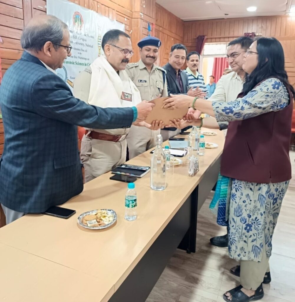 नैनीतालl सरोवर नगरी के कुमाऊं विश्वविद्यालय डी एस बी परिसर फॉरेंसिक साइंस विभाग, कंप्यूटर साइंस विभाग और एस एम आर ऐ सेंट्रल लाइब्रेरी द्वारा संयुक्त रूप से कार्यशाला का आयोजन किया गया जिसमें साइबर सिक्योरिटी और क्राइम इन्वेस्टीगेशन में फॉरेंसिक साइंस के महत्वता को नुक्कड़ नाटक और लेक्चर के माध्यम से दर्शाया गया। कार्यक्रम में वक्ताओं के रूप में डॉ. जगदीश चंद्रा एस. एस. पी. क्राइम एंड ट्रैफिक, नैनीताल, सुमित पांडे सी. ओ. ऑपरेशन रामनगर, नैनीताल, डॉ. अपर्णा शर्मा असिस्टेंट डायरेक्ट, डी एन ए डिवीजन, फॉरेंसिक साइंस लेबोरेटरी हिमाचल प्रदेश, डॉ. राजेश जामवाल असिस्टेंट डायरेक्ट, केमेस्ट्री एंड टॉक्सिकोलॉजी डिवीजन, फॉरेंसिक साइंस लेबोरेटरी हिमाचल प्रदेश ने छात्र छात्रों को साइबर क्राइम से बचने और फॉरेंसिक साइंस को बेहतर समझने के लिए व्याख्यान दिए। इसी बीच फॉरेंसिक विज्ञान विभाग के विद्यार्थियों ने जागरूकता के लिए क्राइम सीन पर आम जनता की भूमिका जिससे कि सबूतों को बचाया जा सके पर क्राइम सीन बनाकर नुक्कड़ नाटक प्रस्तुत किया। इस अवसर पर डॉ जगदीश चंद्र ने कहा कि टेक्नोलॉजी का इस्तेमाल करने पर बहुत सारी सावधानियां भी रखनी पड़ती है तथा हमें इन पर नजर भी रखनी पड़ती है । सुमित पांडे ने साइबर सिक्योरिटी पर पूर्ण प्रकाश डाला तथा कहा कि वॉयस डुप्लीकेसी से लेकर कई तरीके है जो हमें ठगी का शिकार बना रहे है ऐसे में हम सावधानी से टेक्नोलॉजी का प्रयोग करना चाहिए । कार्य करें कि संयोजक डॉ उमंग सैनी ने सभी का स्वागत किया। इस मौके पर कार्यक्रम में प्रोफेसर संजय पंत, डीन स्टूडेंट्स वेलफेयर, डॉ. महेंद्र राणा डीन फैकल्टी ऑफ बायोमेडिकल साइंसेज, प्रोफेसर एच. सी. एस. बिष्ट चीफ प्रॉक्टर, शामिल रहे सभी अतिथियों को शॉल उड़ाकर तथा प्रतीक चिन्ह भेंट कर सम्मानित किया गया । दीप प्रज्वलन से प्रारंभ हुए कार्यक्रम में कुलगीत तथा राष्ट्र गान से कार्य क्रम से सम्पन्न हुआ । कार्यक्रम में प्रॉफ नीलू ,डॉ नवीन पांडे ,डॉ मंडोली ,डॉ राशि मिगलानी ,डॉ नगमा ,डॉ उजमा ,डॉ दीपशिखा जोशी , एस. बी. परिसर प्राध्यापक व बड़ी संख्या में छात्र छात्राएं शामिल रहे। कार्यशाला का संचालन प्रोफेसर ललित तिवारी ने कियाl
