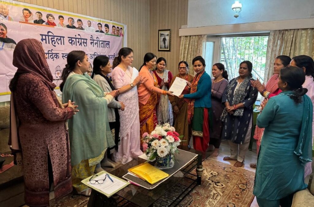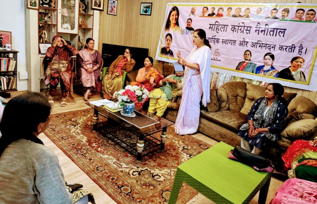 नैनीतालl सरोवर नगरी में नगर महिला कांग्रेस की बैठक नगर महिला कांग्रेस की अध्यक्षा डा. भावना भट्ट के आवास पर हुई।बैठक में प्रदेश अध्यक्ष ज्योति रौतेला और जिला अध्यक्ष खष्टी बिष्ट की संस्तुति पर नगर अध्यक्ष डा. भावना भट्ट ने नगर महिला कांग्रेस की पुरानी कार्यकारिणी को भंग कर नई कार्यकारिणी का गठन किया।