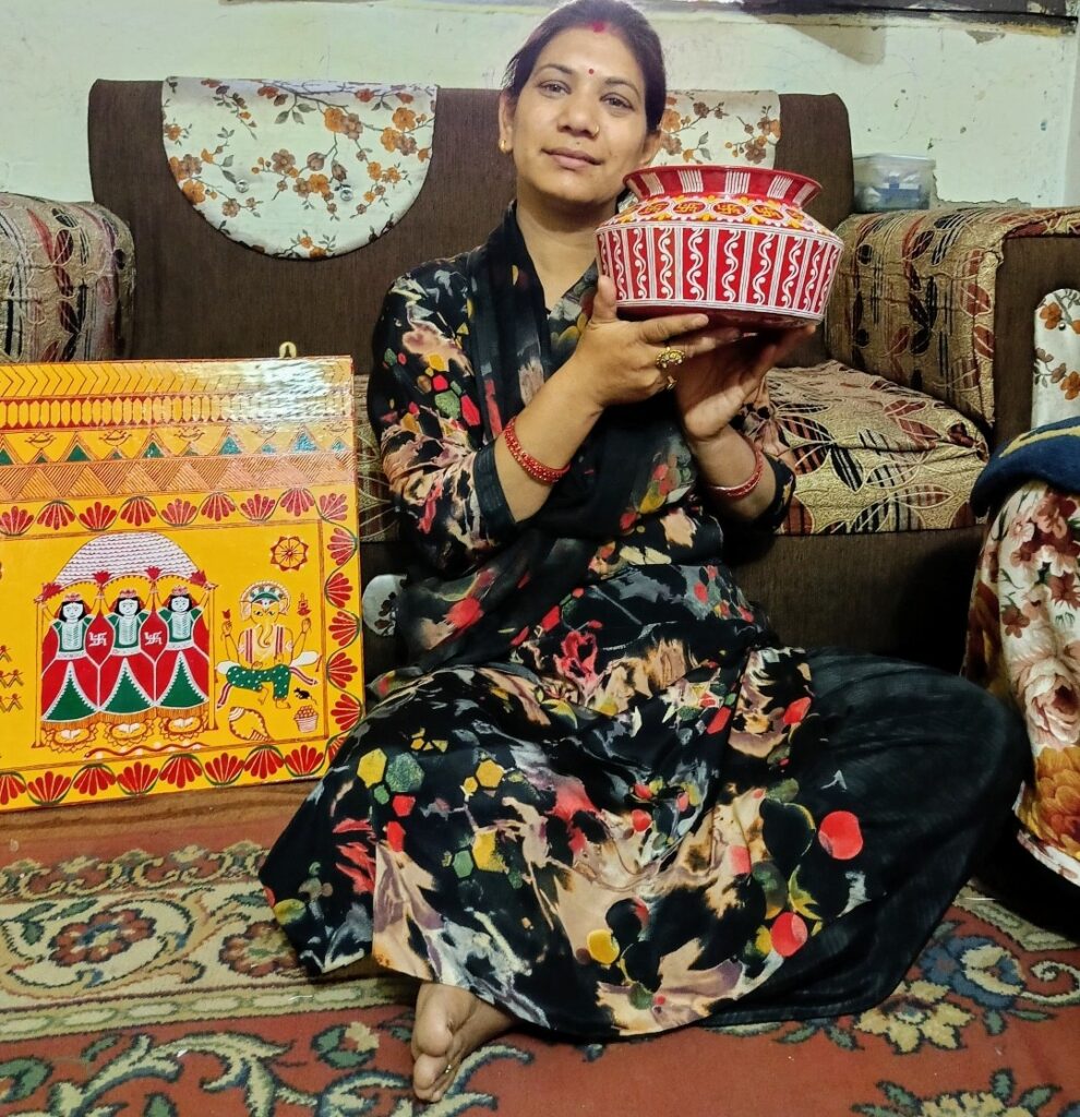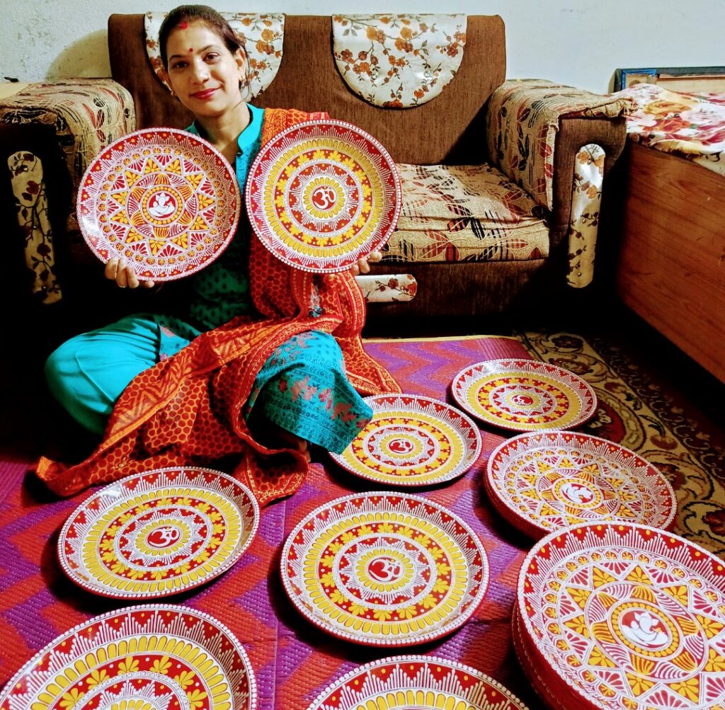 नैनीताल। सरोवर नगरी में कुमाऊनी संस्कृति एपड से बनी कृतियों की झलक आपको हर घर में मिलेगी और एपड का व्यापार काफी फल फूल रहा है। नैनीताल की बहू दीपा चौधरी निवासी रॉयल होटल कंपाउंड मल्लीताल द्वारा एलमुनियम की केतलीयौ को एपड से बनाया गया है जिसकी काफी मांग है दीपा चौधरी ने बताया वह प्रतिदिन के कामकाज के बाद समय निकालकर एपड से मोबाइल बैग जो कॉटन कपड़े और फाइबर से तैयार किए जाते हैं उनको उनके द्वारा खुद तैयार किया गया । और उसमें एपड बनाकर रूप दिया जाता है जो लोगों को काफी पसंद आते हैं इसके अलावा पूजा थाली, शादी पोटली, चौकी पूजा वाली, थाली, और लकड़ी की ट्रेए, कोस्टर मैं एपड से रुप दिया जाता है। इसके अलावा सीलिंग के लिए सनमाइका मैं एपड से बनाया जा रहा है। जो लोग उनसे ऑर्डर पर बनवा रहे हैं। और उनके द्वारा बनाया जा रही एपड जो सभी को अपनी ओर आकर्षित कर रही है। बता दे दीपा पिछले 15 साल की उम्र से एपड बनाते आ रही हैं। और शादी के बाद से वह अपने ससुराल में पिछले 8 साल से एपड बना रही हैं। दीपा चौधरी ने बताया उनकी बनाई एपड की सभी सामग्री देश के अलग-अलग शहरों में जा रही हैं और लोग उन्हें काफी पसंद कर रहे हैं। इससे लगभग 10 से 12 हजार महीना कमा रही है।
