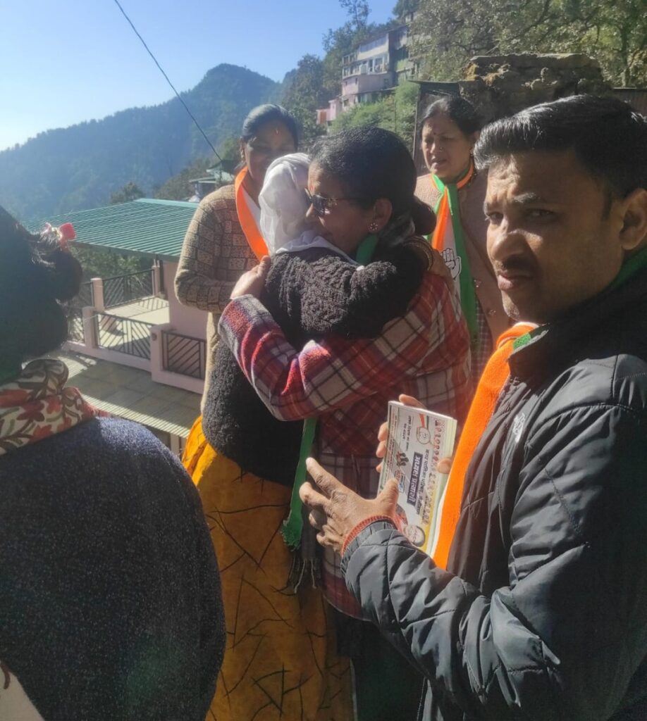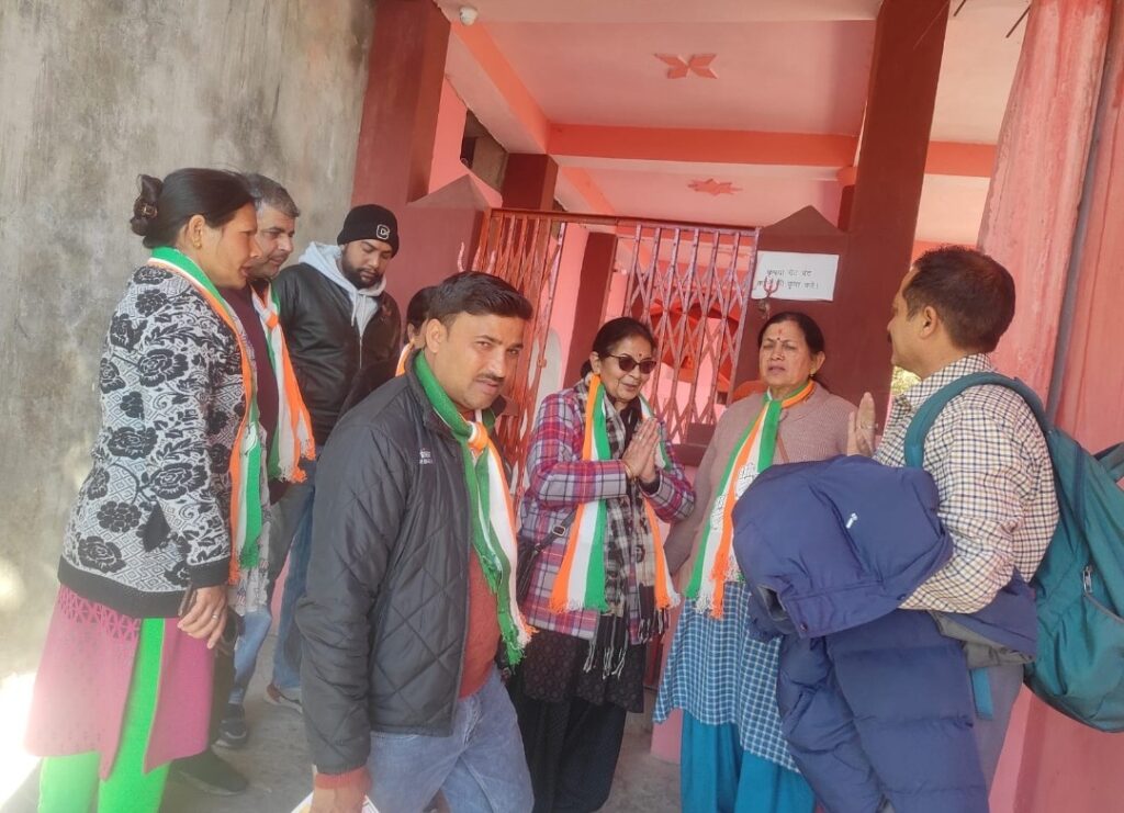 नैनीतालl सरोवर नगर पालिका चुनावी पर्व की धूम और सभी प्रत्याशी मतदाताओं को रिझाने में लगे हुए हैंl शनिवार को कांग्रेस की अध्यक्ष प्रत्याशी डॉक्टर सरस्वती खेतवाल ने अपना चुनाव प्रचार कृष्णापुर वार्ड के गुफा महादेव बिष्ट भवन मल्लाकृष्णापुर हाजी चुंगी दुर्गापुरी कॉलोनी मैं कार्यकर्ताओं के साथ जाकर चिन्ह हाथ के पंजे पर मोहन लगाने की मतदाताओं सा अपील करते हुए कहा आपका प्यार और आशीर्वाद से ही इस गरिमय पद पर बैठूंगी इस दौरान बुजुर्ग महिलाओं द्वारा उन्हें गले लगाकर विजय भव का आशीर्वाद दिया l इस दौरान क्षेत्र के लोगों ने समस्याओं से भी उनका अवगत कराया अस्वस्थ किया अगर उनके आशीर्वाद से वह अध्यक्ष बनती हैं तो क्षेत्र की समस्याओं का तत्काल समाधान कराया जाएगाl कार्यकर्ता भी गर्म जोशी से उनके चुनाव प्रचार में जुटे हुए हैंl इस मां के पास चुनाव प्रचार में कार्यकर्ता हिमांशु पांडे महेश जोशी इंद्रर नेगी राहुल पुजारी अभिषेक तनुज सरवर खान सहित अन्य दर्जनों कार्यकर्ता मौजूद थे l