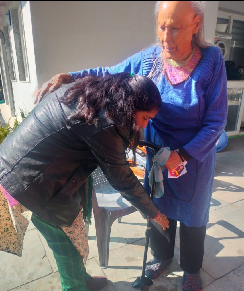 के पैर छूकर ले रही हैं आशीर्वाद