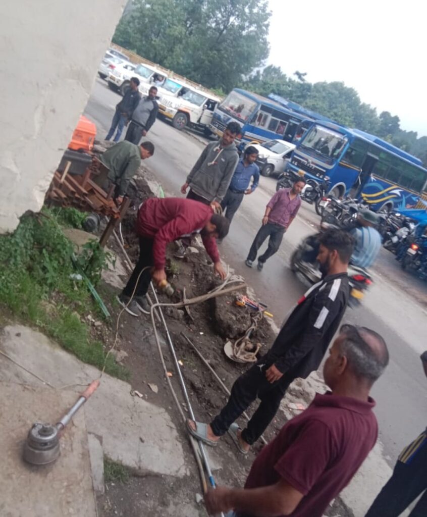 टीआरसी और पेट्रोल पंप के पास रोड पर नाली निर्माण शुरू